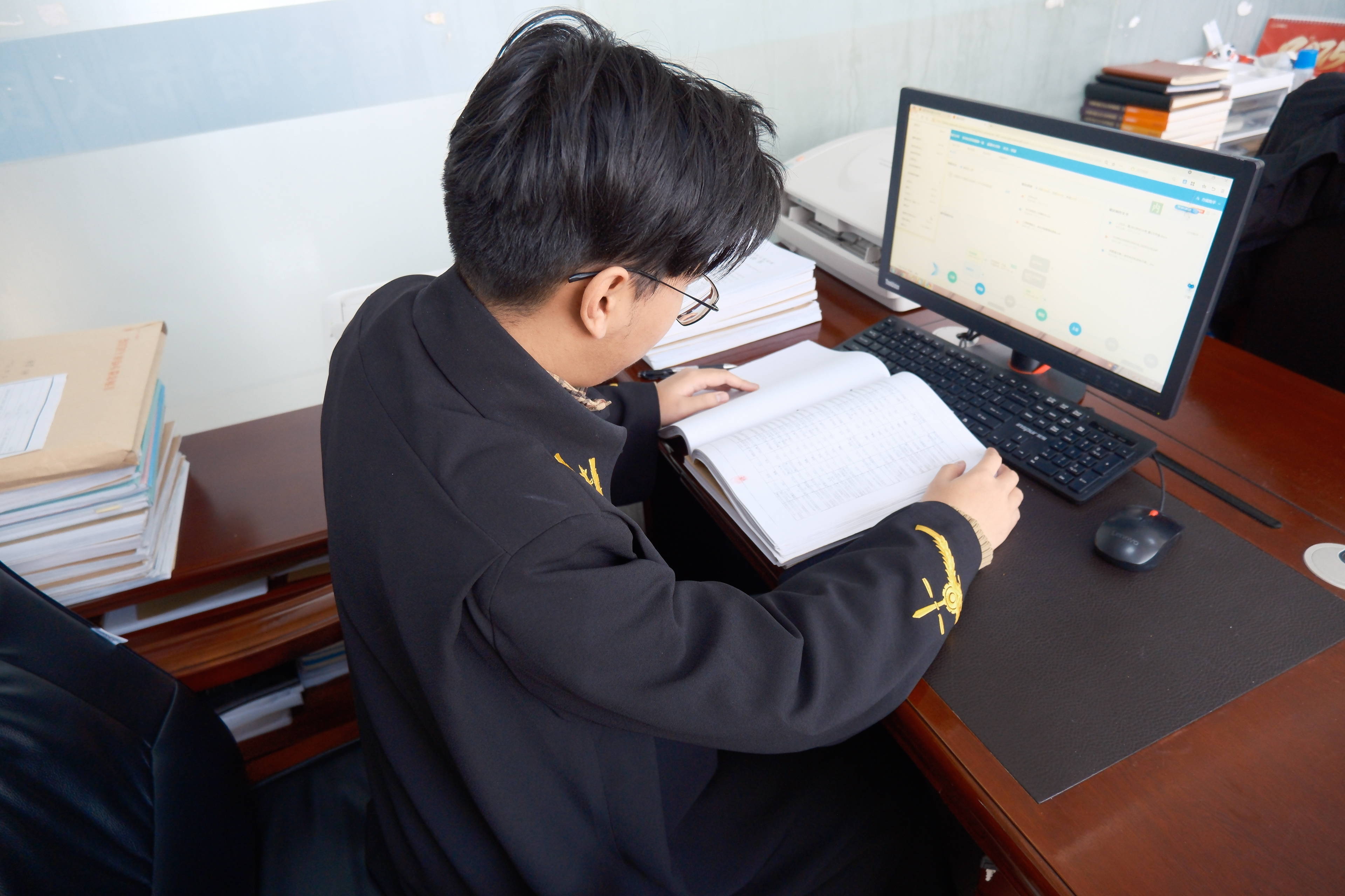 图为2025年4月18日,承办法官查阅案卷材料,为张某某诈骗罪一案一审开庭做准备。(德令哈人民法院供图)——前期转嫁风险,后期利诱威胁。涉刑事类“请托办事”案件中,受害人对于“捞人”困难性也心知肚明,因此诈骗分子往往采用“不保证结果”等模糊承诺,不打包票。同时,一旦骗局败露,部分诈骗分子会以“给钱找关系是行贿,如果报警,你们也会被抓”等“话术”来威胁,导致受害人不敢报警。